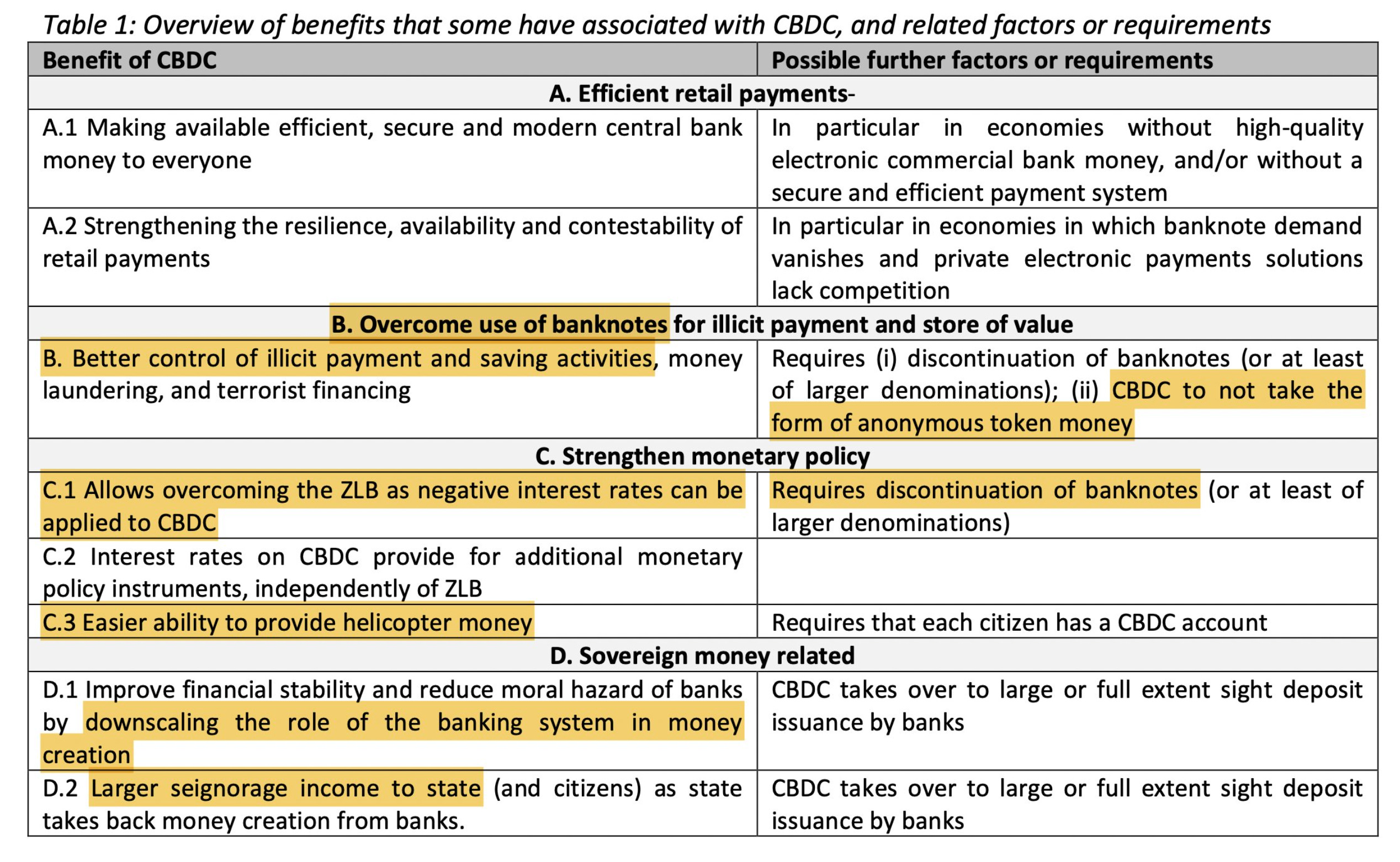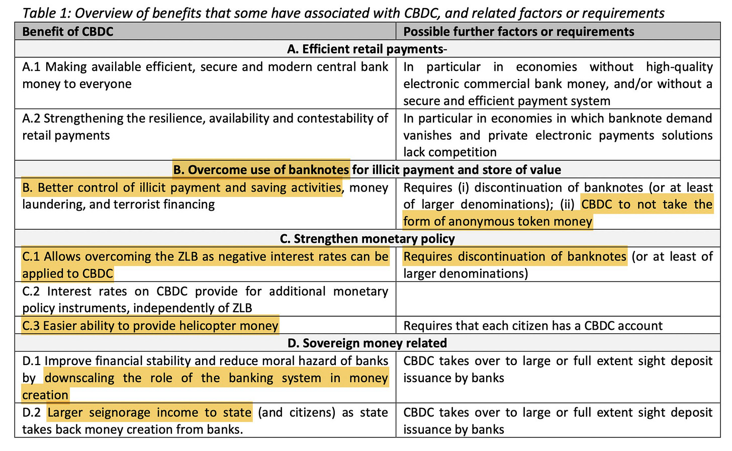 Here’s an excerpt from a European Central Bank paper on the “benefits” of a CBDC: